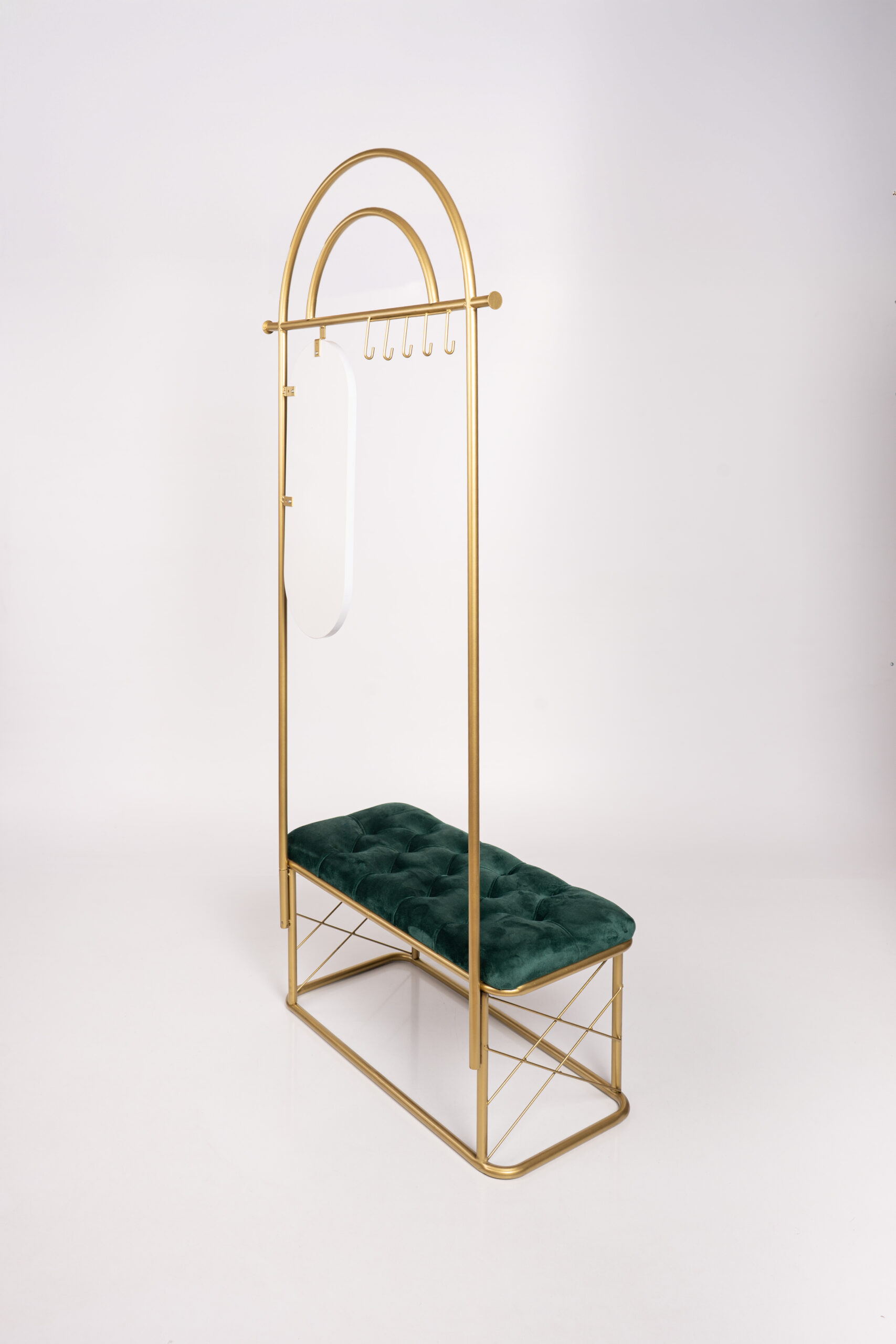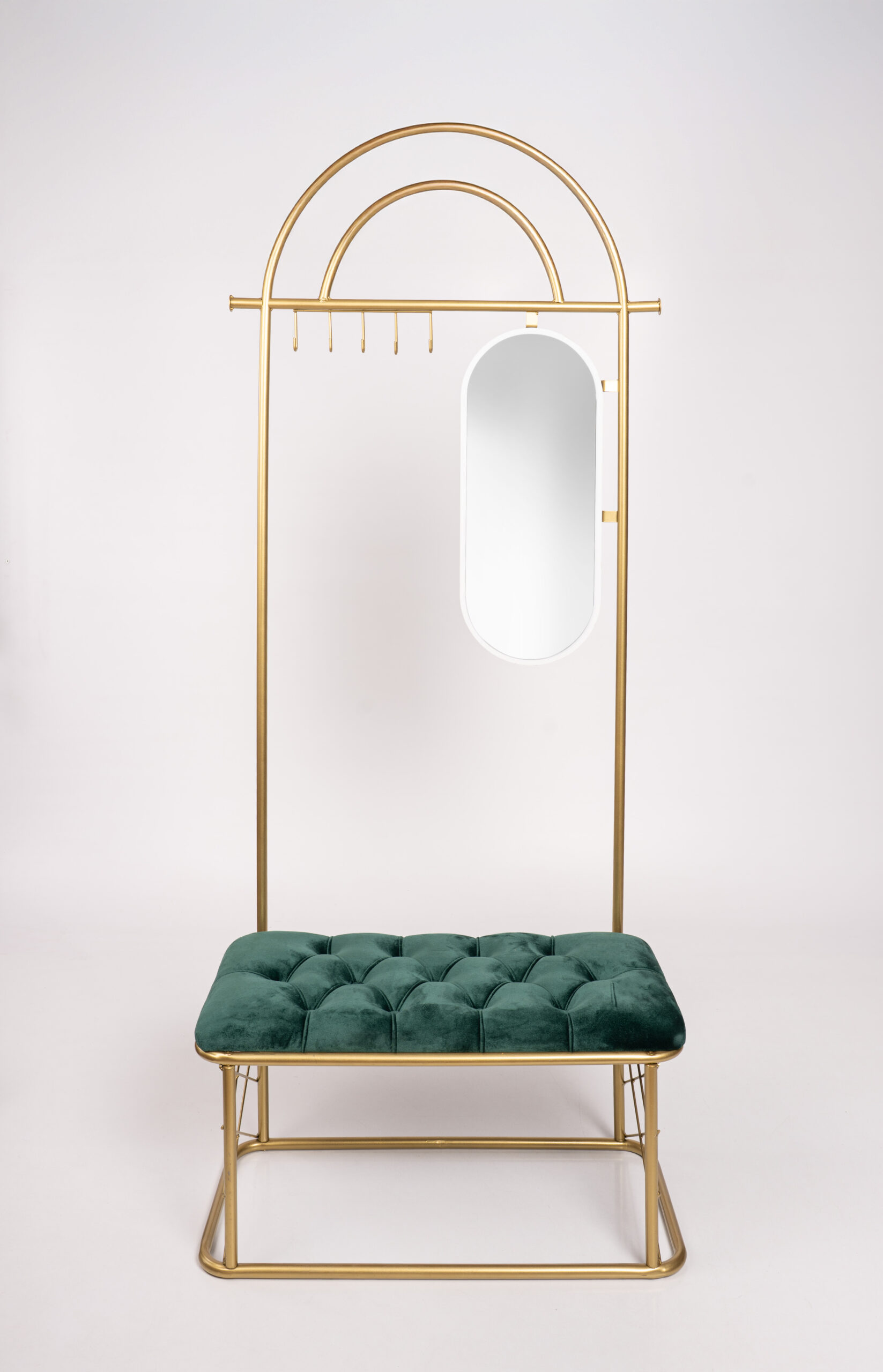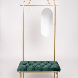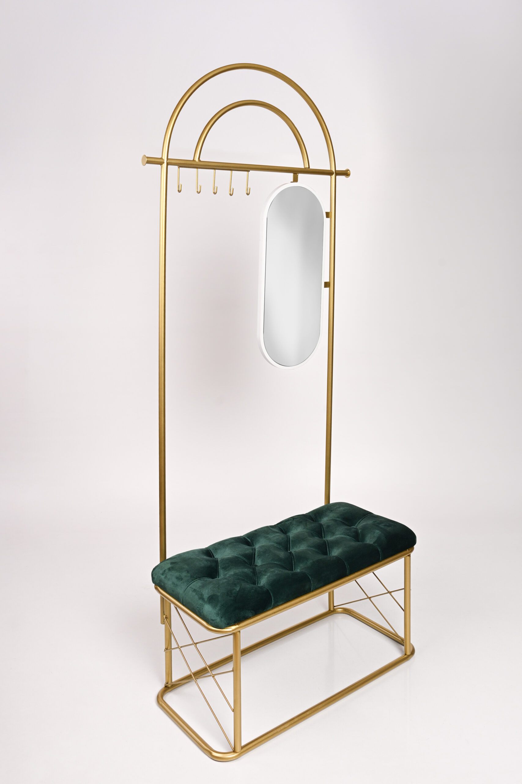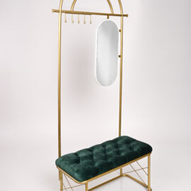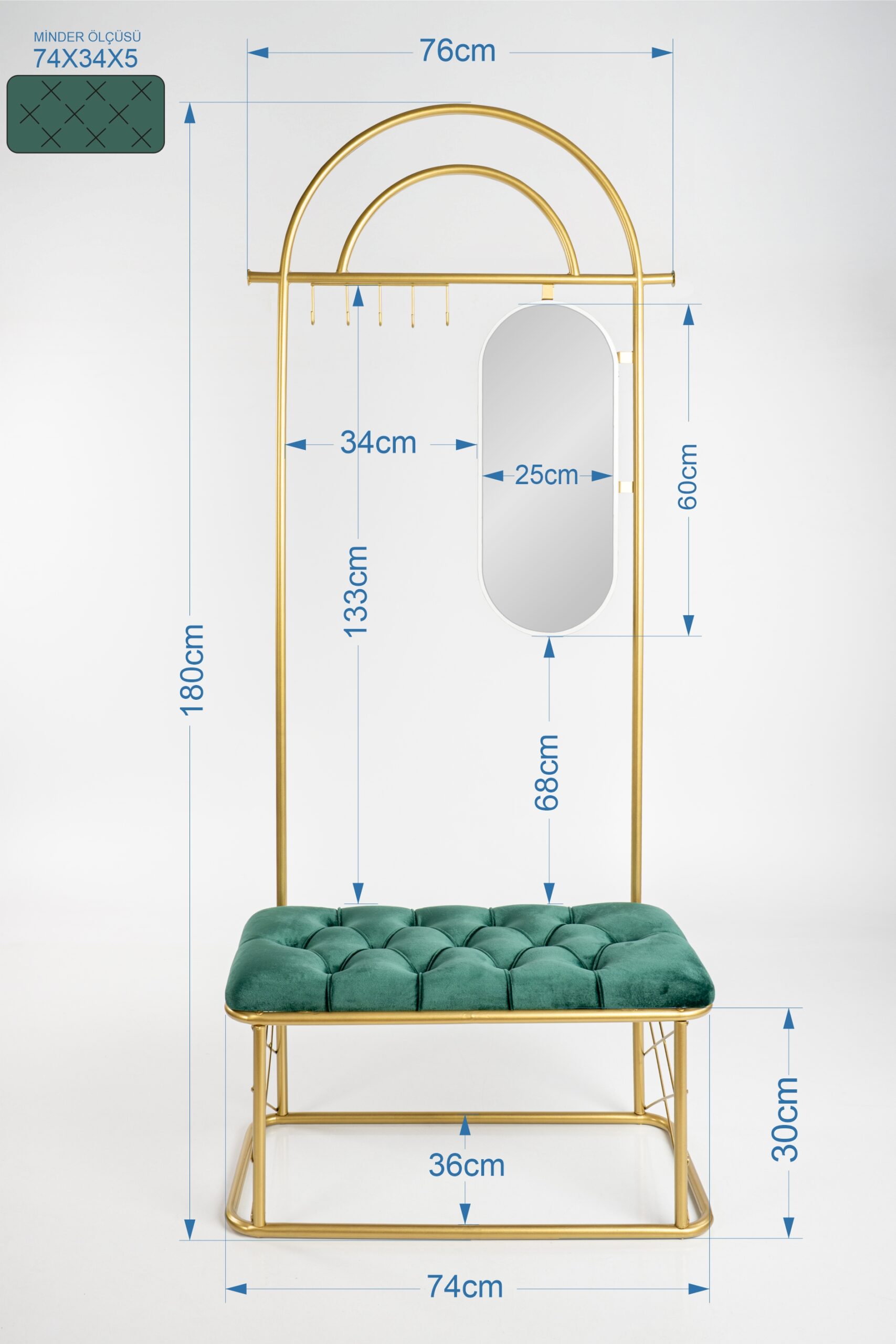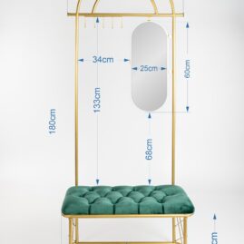 – Modern tasarımıyla evinizin girişine şıklık katan aynalı portmanto, hem fonksiyonel hem de estetik bir çözüm sunar.; – 175 cm yüksekliğiyle geniş kullanım alanı sağlayan bu ayakkabılık, her türlü ayakkabıyı rahatça saklamanızı sağlar.; – Ayaklı askılık tipi sayesinde yerden tasarruf eden ve kolayca temizlenebilen yapısı ile pratik bir kullanım sunar.; – %100 metal malzemesi uzun ömürlü kullanım vaat ederken, dayanıklılığı ve sağlamlığı ile dikkat çeker.; – 75 cm genişliğindeki puf bench bölümü ile kapı girişinde ayakkabılarını rahatlıkla giyebilirsiniz.